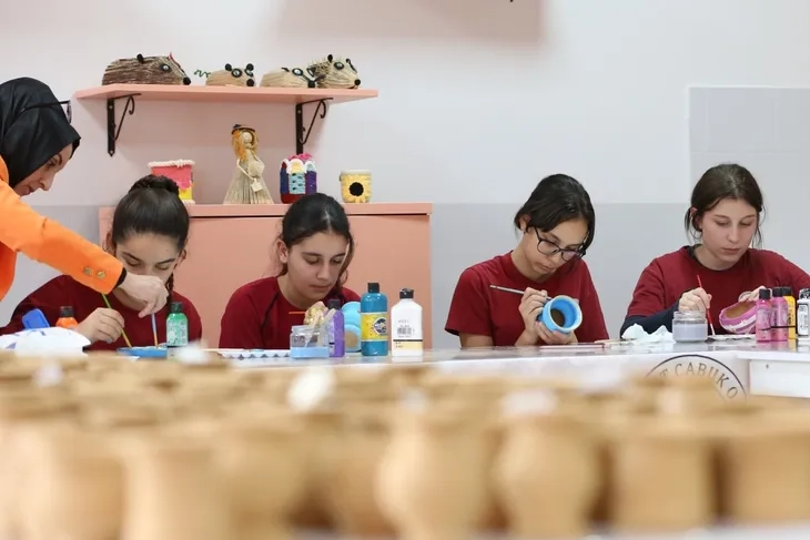 Öğrenciler, resim öğretmenleri ve usta öğreticiler eşliğinde çömlekten takı kutusu, mumluk, şekerlik, vazo gibi dekoratif ürünler ve mutfak eşyaları üretiyor. Şekil verildikten sonra kurutulan çömlekler, daha sonra öğrenciler tarafından boyanarak okullarında sergileniyor.