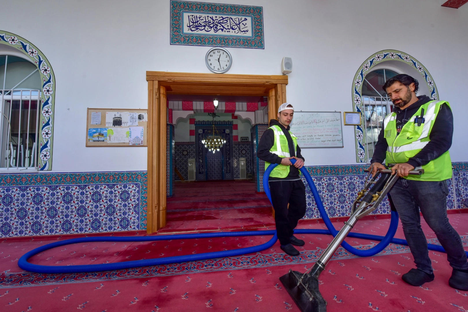 Camilerin iç mekanlarını baştan aşağı temizleyen ekipler, halıları da hijyen kurallarına uygun şekilde dezenfekte ediyor. Kapı, pencere ve ayakkabılık gibi cami içerisindeki ortak kullanım alanlarını da titizlikle temizleyen ekipler, özel olarak sıkılan hoş kokularla camileri ibadete hazır hale getiriyor.