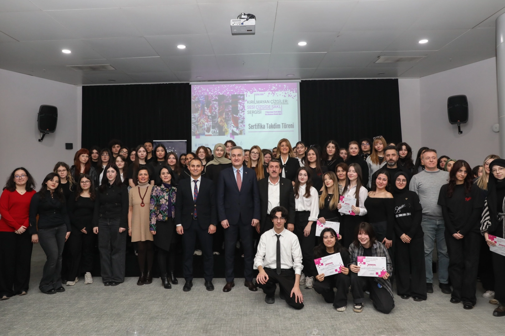 Bursa Büyükşehir Belediyesi tarafından düzenlenen ‘Kırılmayan Çizgiler: Sesi Çizgide Saklı’ dijital afiş sergisine katkı sunan öğrencilere sertifikaları verildi.