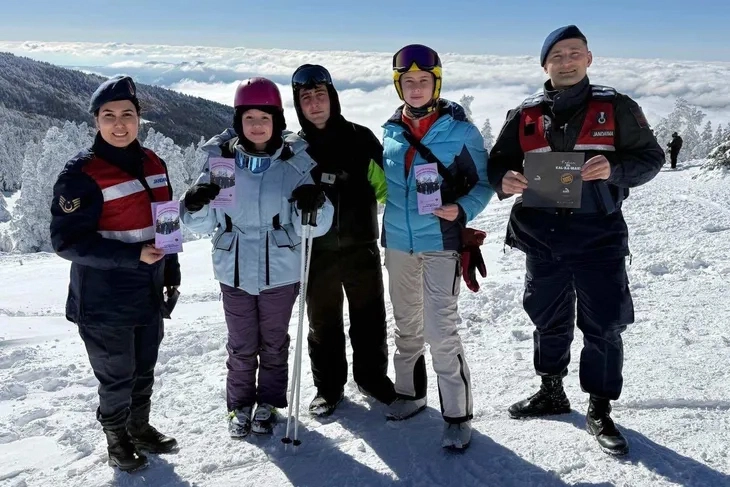 Bursa İl Jandarma Komutanlığı’na bağlı Aile İçi Şiddetle Mücadele ve Çocuk Kısım Amirliği personeli tarafından, Uludağ Milli Parkı’na kış turizmi amacıyla gelen ziyaretçilere yönelik Kadın Acil Destek Uygulaması (KADES) hakkında bilgilendirme faaliyeti gerçekleştirildi.