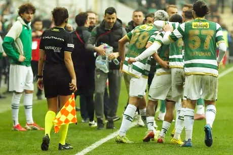 Bursaspor, evinde Mardin 1969 Spor ile karşı karşıya geldi. Yeşil Beyazlılar, karşılaşmadan 2-0 galip ayrılarak son üç haftaya en yakın rakibinin 6 puan önünde girdi.