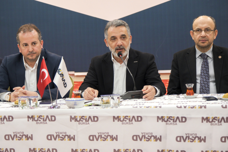 Programın açılış konuşmasını gerçekleştiren MÜSİAD Bursa Şube Başkanı Alparslan Şenocak, Ramazan ayında Zimem Defteri geleneğiyle mahalle bakkalları ve eczanelerdeki borçları sessizce kapatarak ihtiyaç sahiplerinin yükünü hafiflettiklerini belirtti. Dünyadaki ve ekonomideki güncel gelişmelere de dikkat çeken Başkan Şenocak, “Küresel dengelerin hızla değiştiği, etrafımızın adeta bir ateş çemberine döndüğü bu zorlu dönemde, Türkiye’nin yeni dünya düzeninde oyun kurucu rolüyle tam merkeze yerleşeceğine yürekten inanıyoruz. Bu inançla, devletimizin uyguladığı rasyonel ekonomik politikalara sonuna kadar güveniyor; yatırım, üretim, istihdam ve ihracat rotamızdan sapmadan geleceği inşa eden bir yapı olma gayretiyle çalışıyoruz. Diğer yandan başta Gazze ve Doğu Türkistan olmak üzere, insanlık dışı şartlarda hayatta kalma mücadelesi veren tüm kardeşlerimizin acısını derinden hissediyoruz. Dünyanın gözü önünde mazlumlara zulmedenleri şiddetle kınıyor; dünyada barış ve adaletin en kısa sürede hâkim olmasını temenni ediyorum.” ifadelerini kullandı.