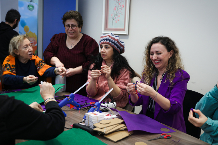Kadın mücadelesinin simgeleriyle zenginleştirilen çalışmalarda katılımcılar hem kendi tasarımlarını oluşturdu hem de fikir alışverişinde bulunarak kolektif üretim deneyimi yaşadı. Keyifli vakit geçiren ve ortak bir amaç doğrultusunda üretmenin mutluluğunu paylaşan kadınlar, düzenlenen etkinlik dolayısıyla Bursa Kent Konseyi’ne teşekkür etti.