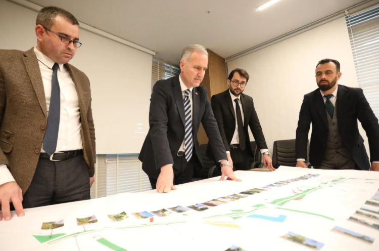 Belediye Başkanı Alper Taban, Başkan Yardımcıları Fevzi Dülger ve Melih Ateş, Park Bahçeler Müdürü Sabri Mert ile Peyzaj Mimarı Yeşim Mankal’ın katılımıyla hazırlanan proje üzerinde incelemeler yapıp istişarelerde bulundu. Projenin görselleri de bu toplantıda ilk kez paylaşıldı.