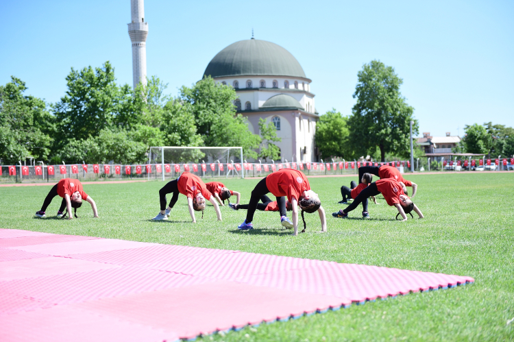 Uygulama kapsamında anneler spor yaparken, çocuklar da eş zamanlı olarak Cimnastik eğitimi alabiliyor.